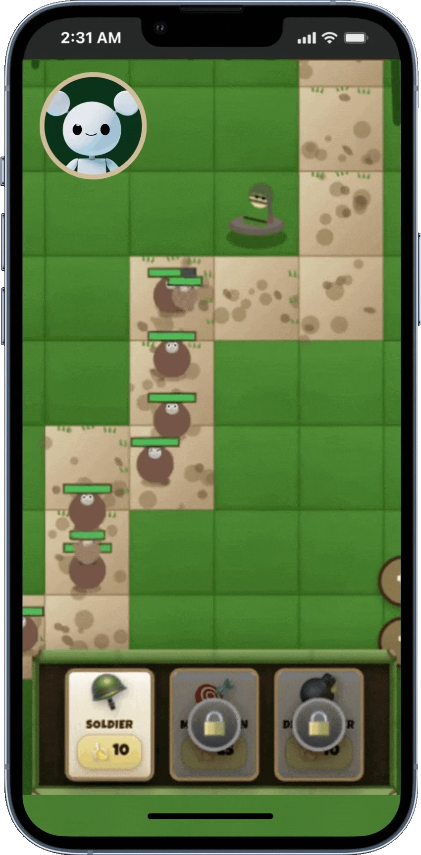 Let users discover short, playful sessions inside the character experience, then unlock revenue through direct game sponsorships, rewarded video, and end-screen placements users can opt into.